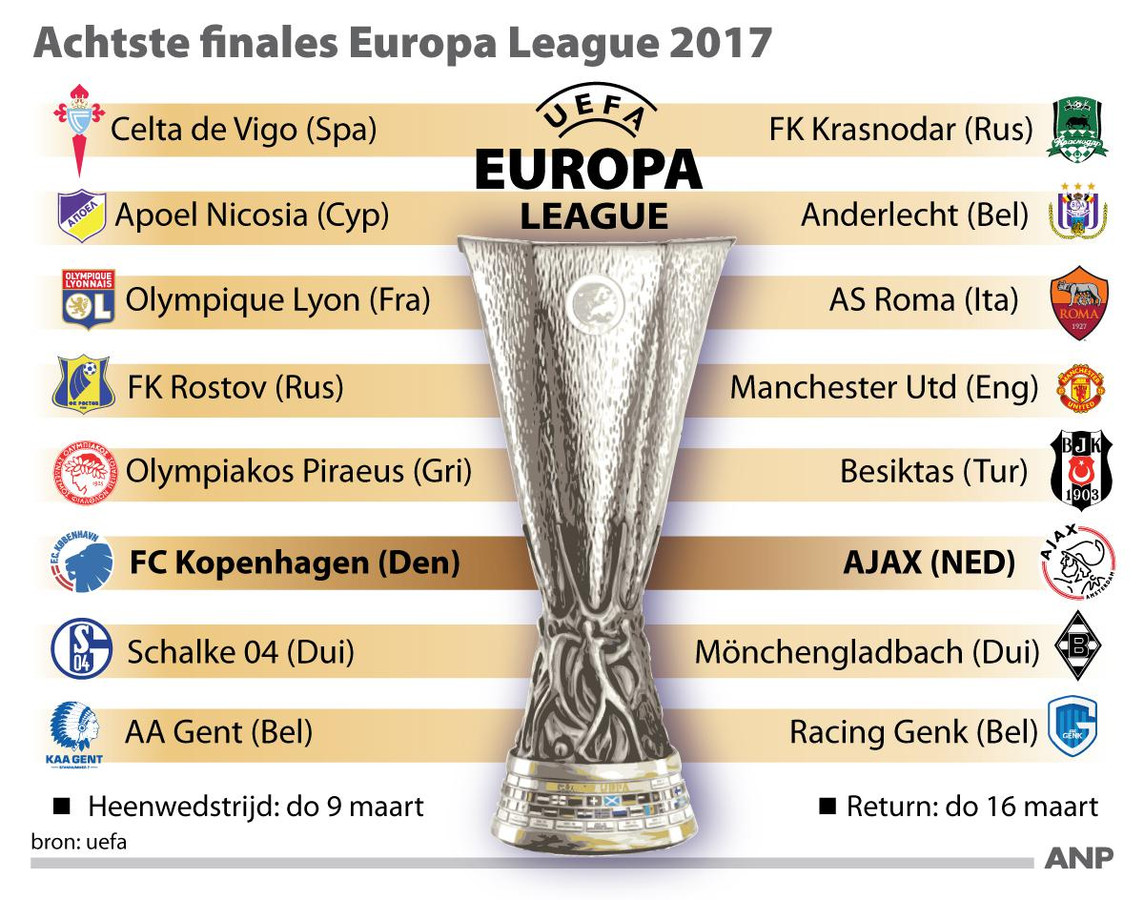 Ajax weet al wanneer het de uit een voorstad van madrid afkomstige opponent zal treffen in de zestiende finales van de europa league. All ajax ticket orders are guaranteed. Zowel ajax als psv heeft een geplaatste status en beide nederlandse clubs zitten zodoende in pot 1 bij de loting. Si parte alle ore 18.55, quando i riflettori sono puntati a manchester, dove lo si parte alle ore 18.55, quando i riflettori sono puntati a manchester, dove lo united sfida il milan. Arsenal, tottenham, roma y ajax con pie y medio en cuartos'.